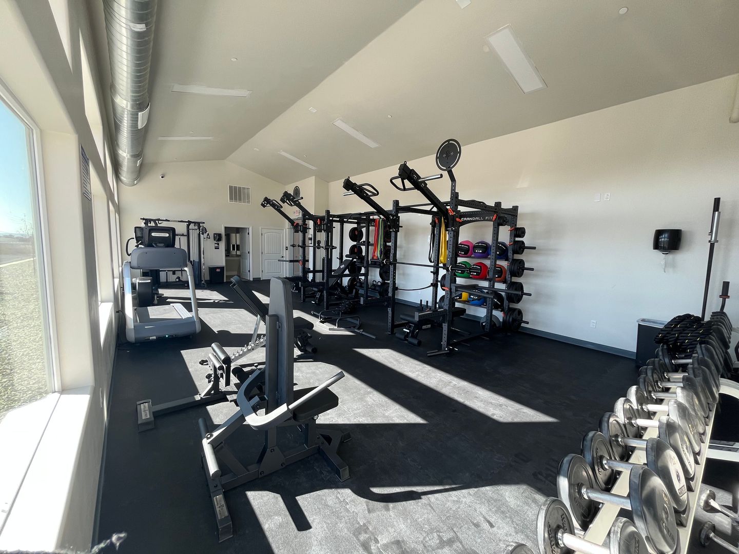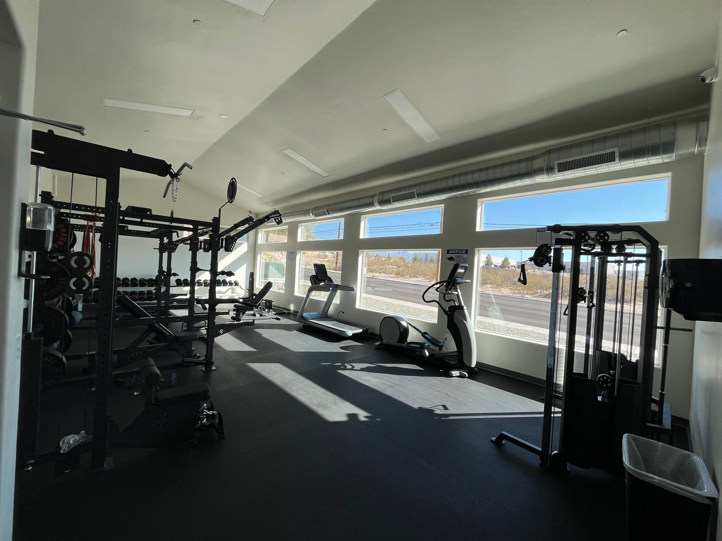 Amenities include a fully equipped fitness center for residents’ convenience.